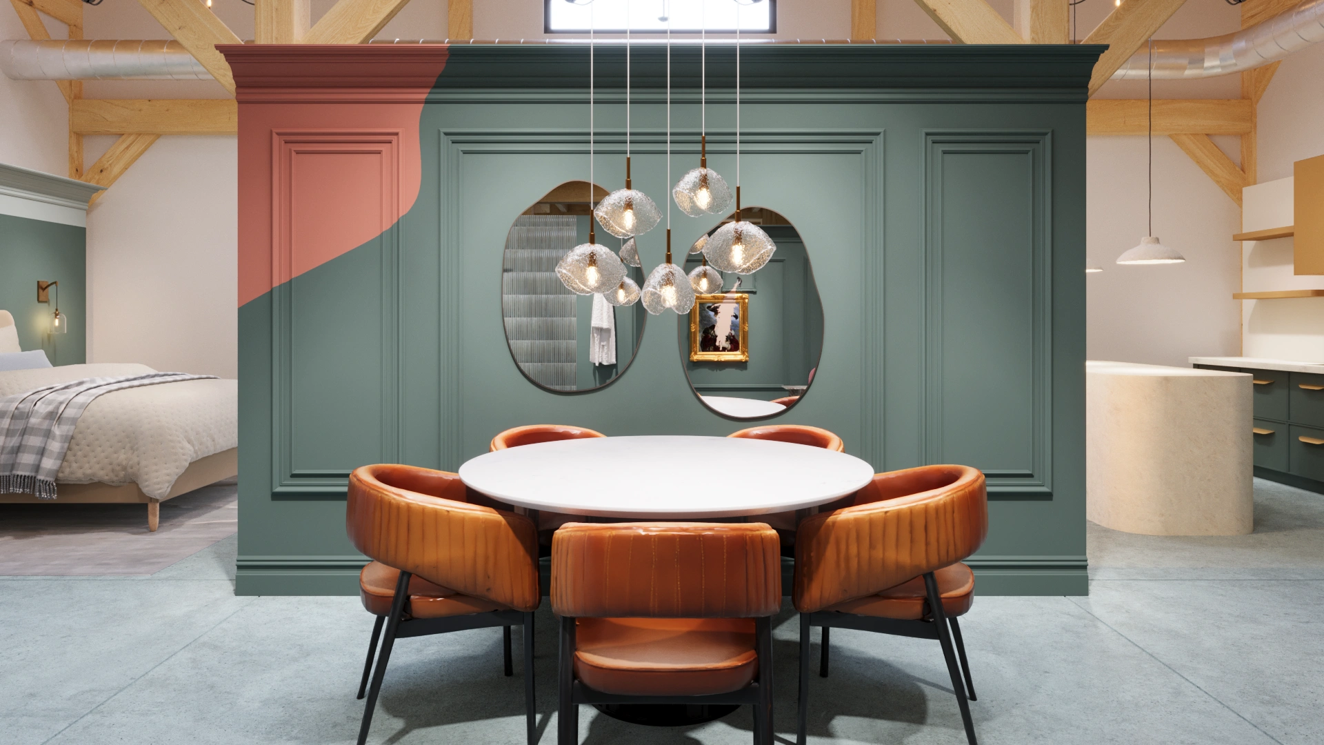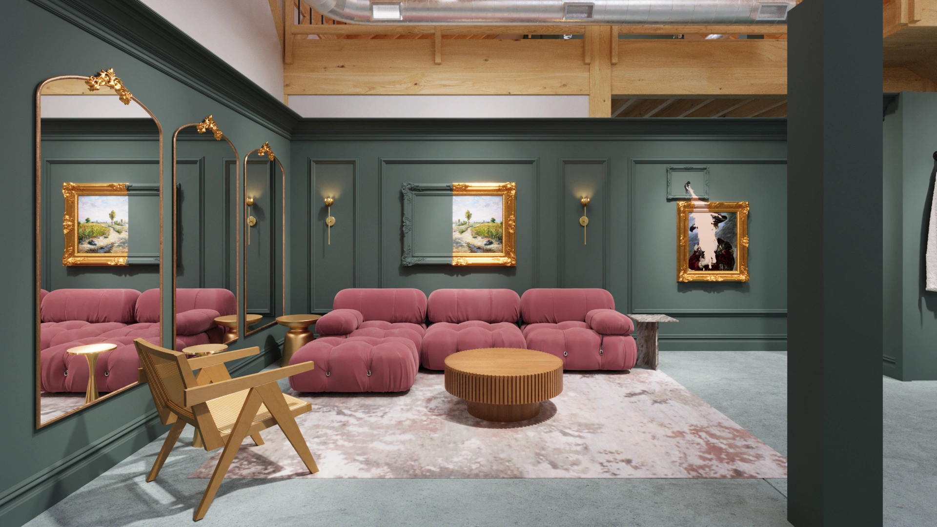 Our 3D rendering project for BEHR Paint’s Color of the Year event brought the client’s design and construction plans to life through vivid digital visualization. Guided by design direction from a social media influencer, our images transformed a stunning timber-framed barn into a series of immersive room vignettes highlighting BEHR’s 2025 featured color. In addition to photorealistic still renderings, we produced a dynamic 3D animation showcasing how the venue was reimagined, built out, and staged for this showcase event.